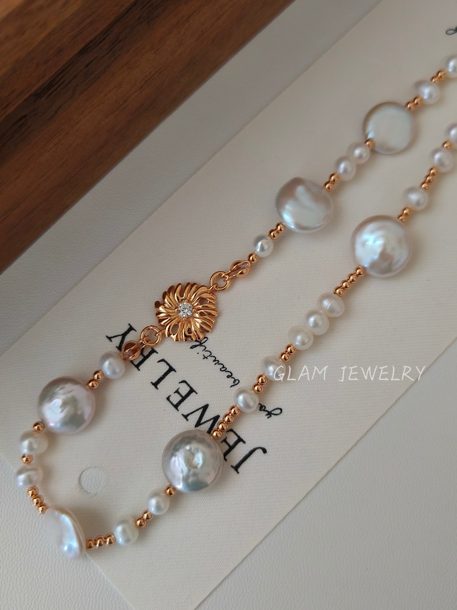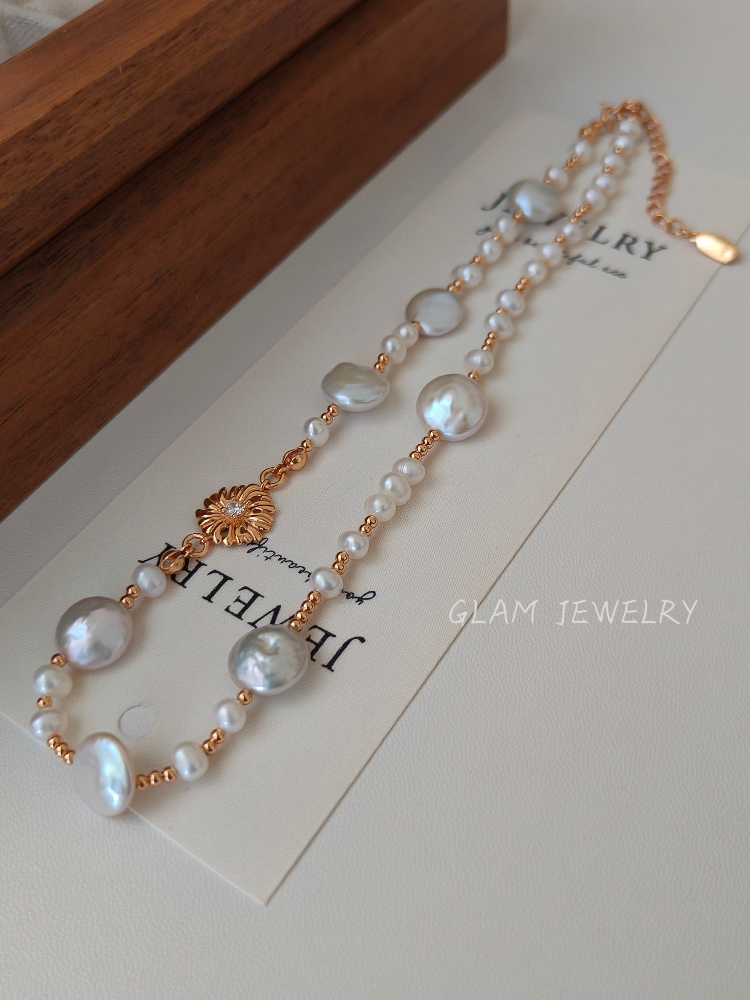 Flat Freshwater Pearl Necklace | 18K Gold Vermeil on Solid S925 Sterling Silver | 14.17” + 2.36” Adjustable 数量