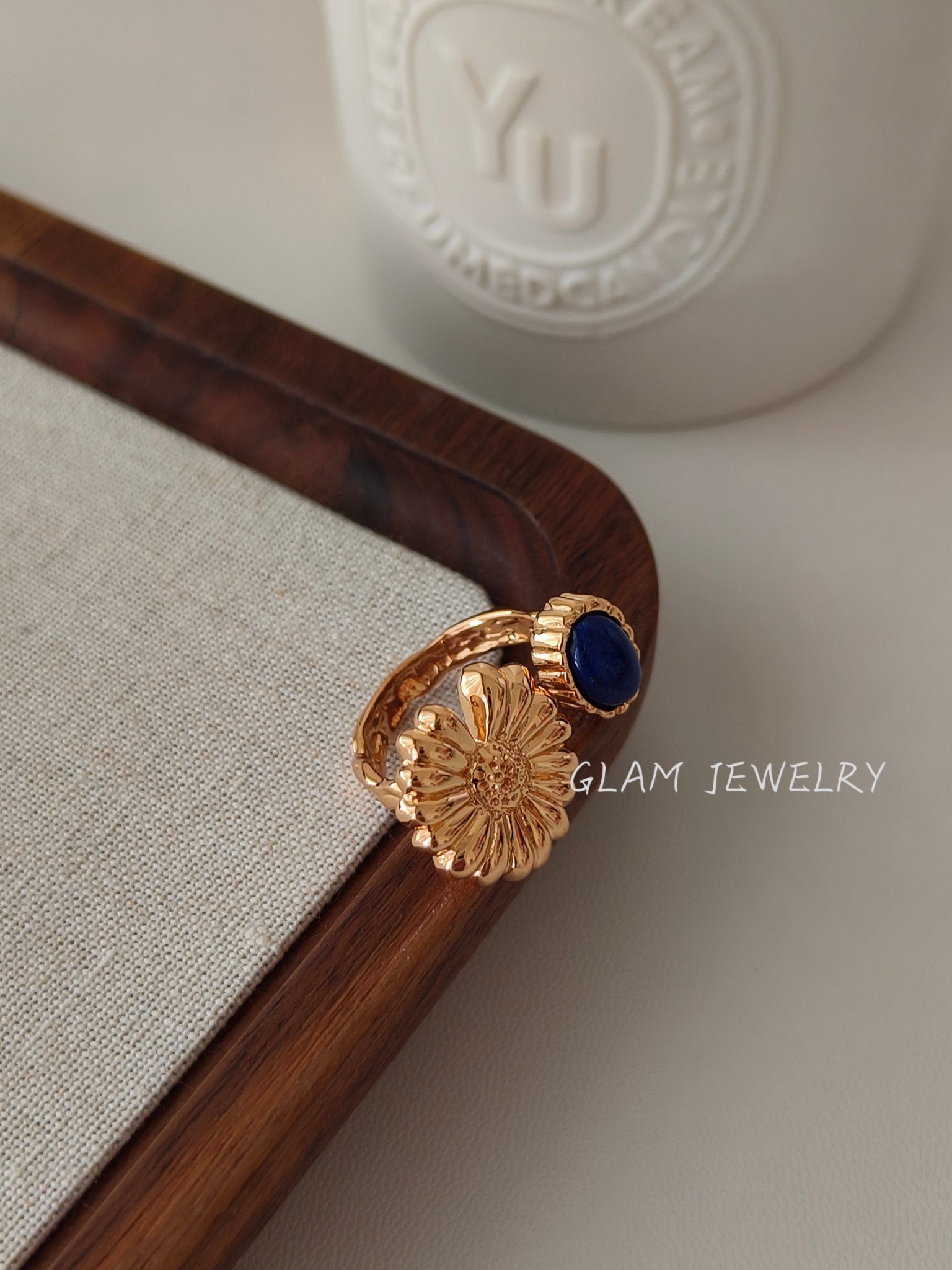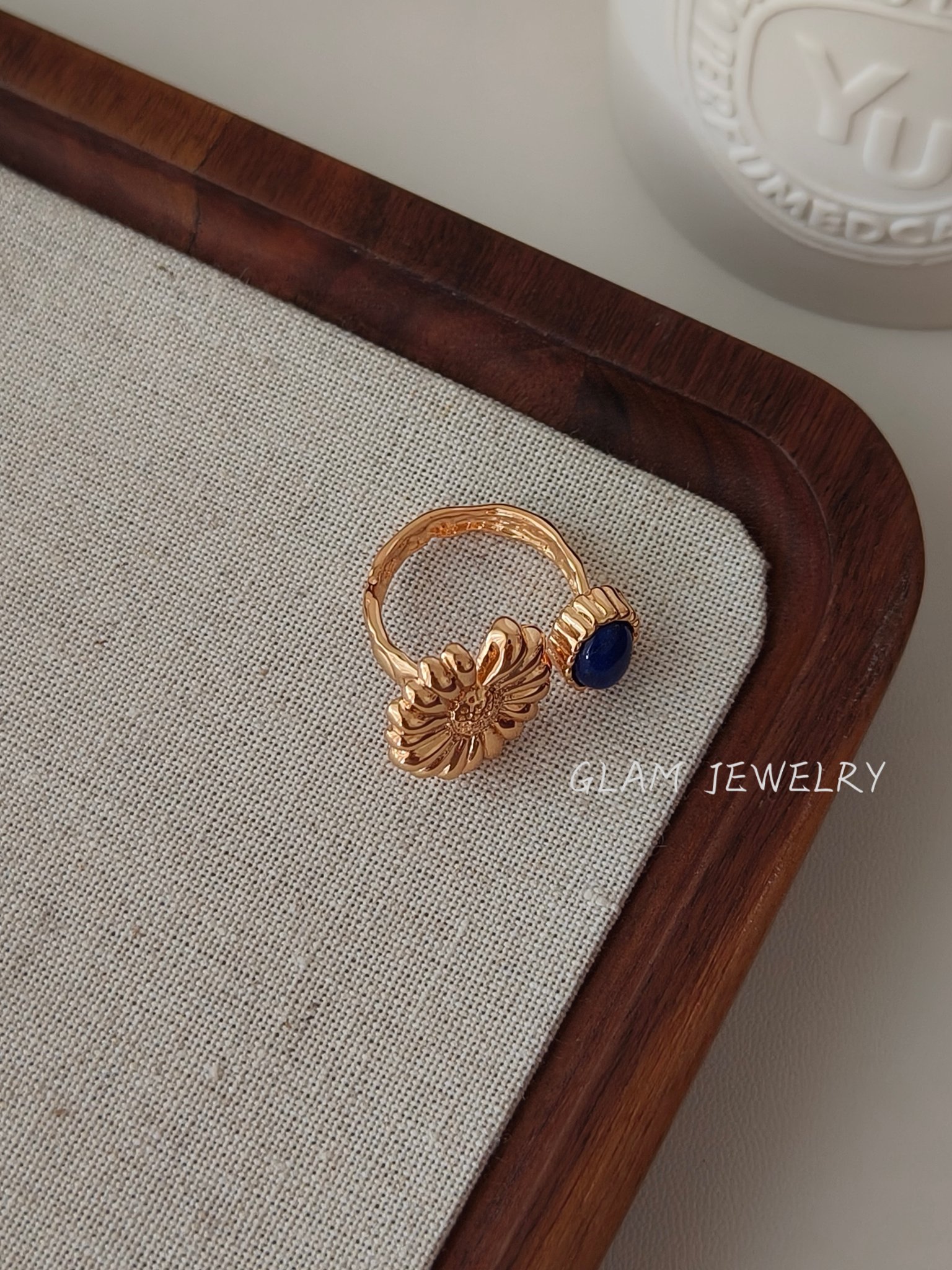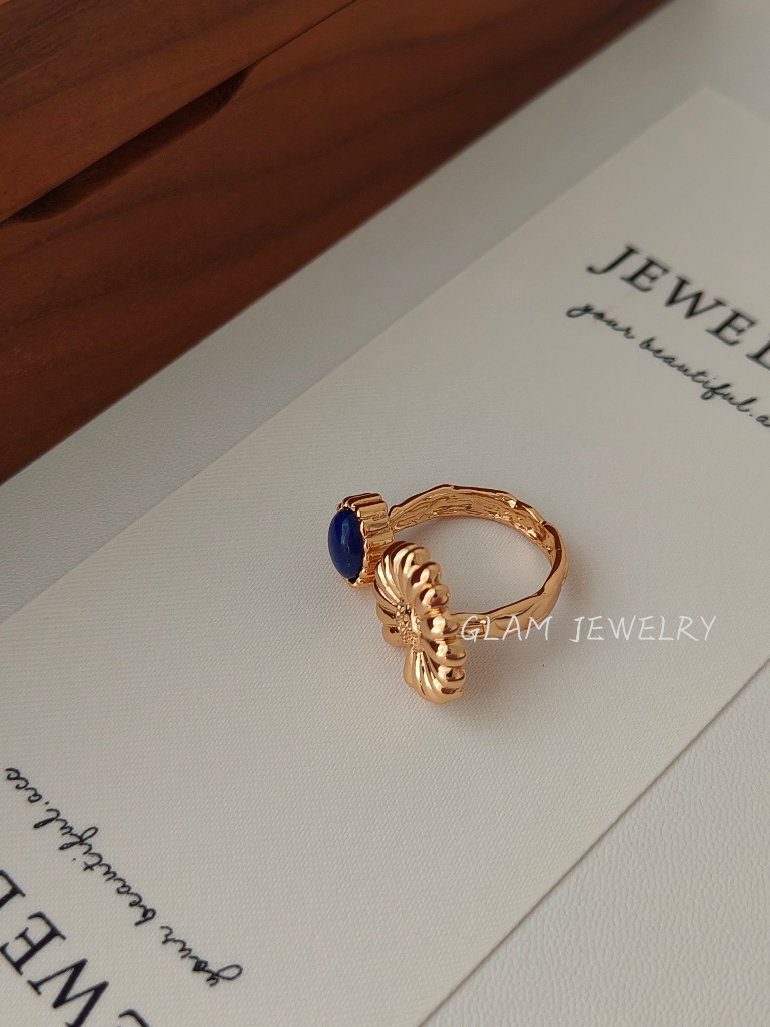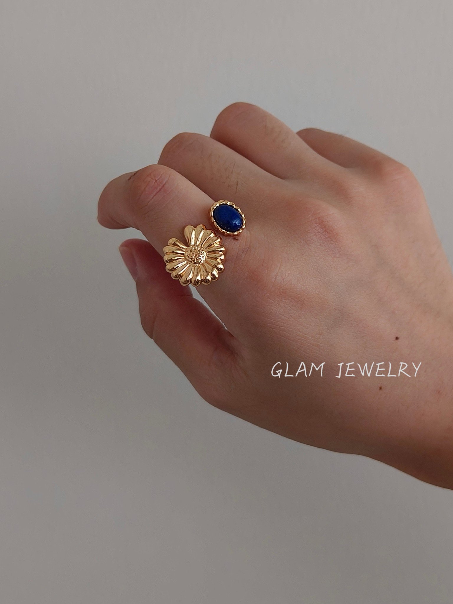 Lapis Lazuli Statement Ring | Adjustable 18K Gold Plated Sterling Silver 数量